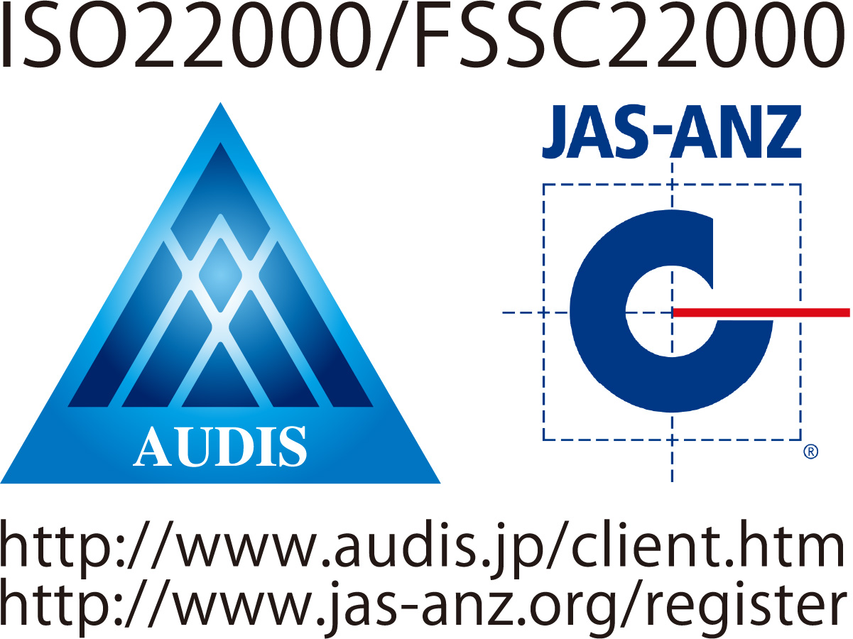 ※FSSC22000とは…GFSI(Global Food Safety Initiative:国際食品安全イニシアチブ)により承認された食品安全認証スキームのひとつです。食品安全マネジメントシステムの国際規格ISO22000に食品安全のための前提条件プログラムISO/TS22002-1及びFSSC22000追加要求事項を追加したものです。